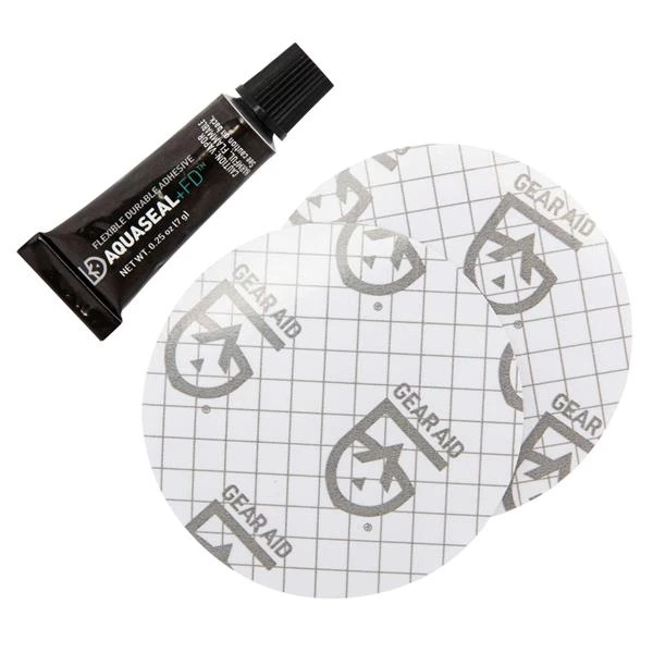 - Kit includes: 2 patches (3″ diameter) and 0.25 oz tube of AQUASEAL + FD